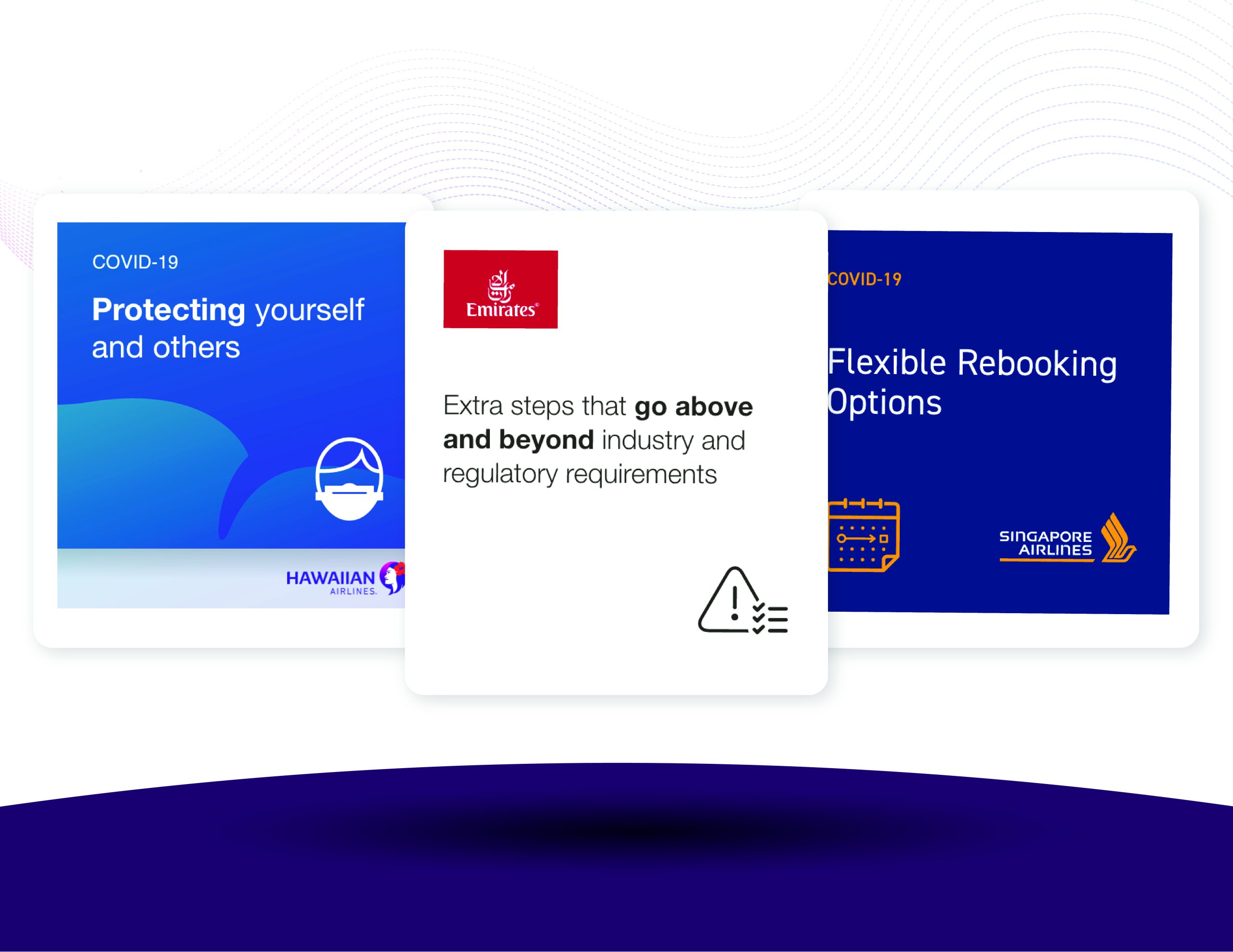 As airlines modify their flexible booking policies, enhanced cleaning, and air filtration procedures, real-time safety measures, and more, this innovative form of airline content can help passengers understand quickly changing situations. We’re also using UPAs to let people know about special requirements related to their origin and destination, such as mandatory quarantine policies.